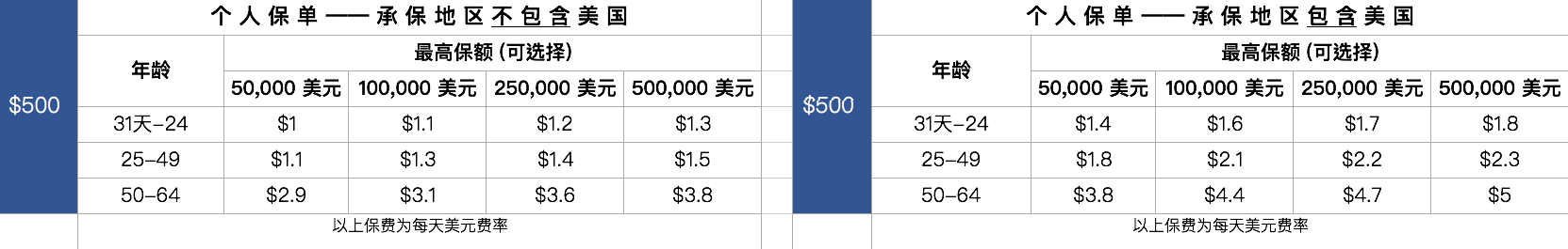 • 最高保额:$ 10,000  $ 500,000 不等